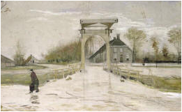 In 1883 verblijft Vincent van Gogh in Veenoord/Nieuw-Amsterdam. Deze tekening maakte hij van de ophaalbrug vlak bij de plek waar de molen stond. http://www.histoforum.net/vangogh